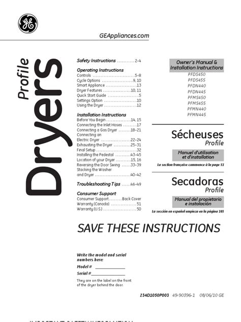 Download GE PROFILE DRYER MANUAL Kobo ManyBooks